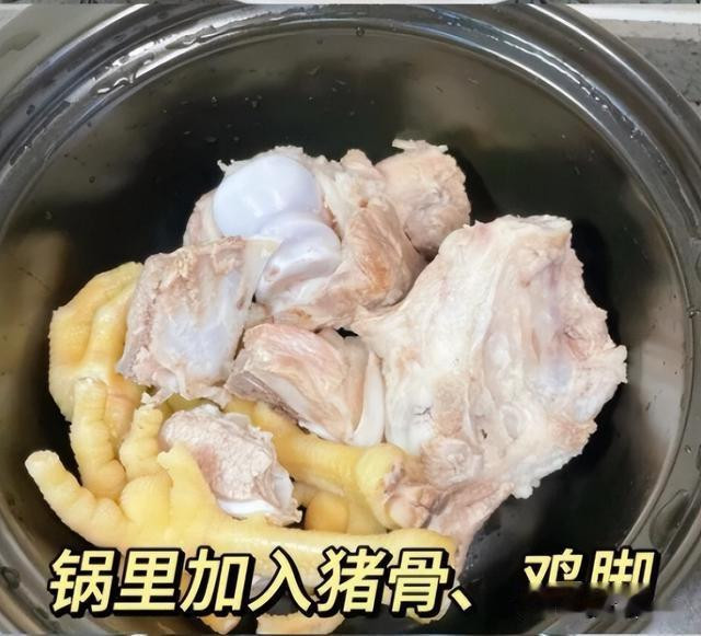 第三步:把处理好的猪骨和鸡爪放入砂锅中,加入足够的清水(大约2000毫升),放入姜片,眉豆,芡实,陈皮等食材,大火烧开后转小火慢炖1小时。这时候,你可以闻到锅里渐渐飘出的肉香,让人垂涎欲滴。